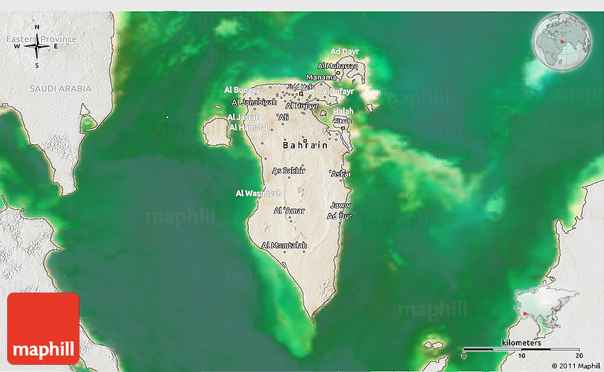 Satellite map shows the Earth's surface as it really looks like. The above map is based on satellite images taken on July 2004. This satellite map of Bahrain is meant for illustration purposes only. For more detailed maps based on newer satellite and aerial images switch to a detailed map view.