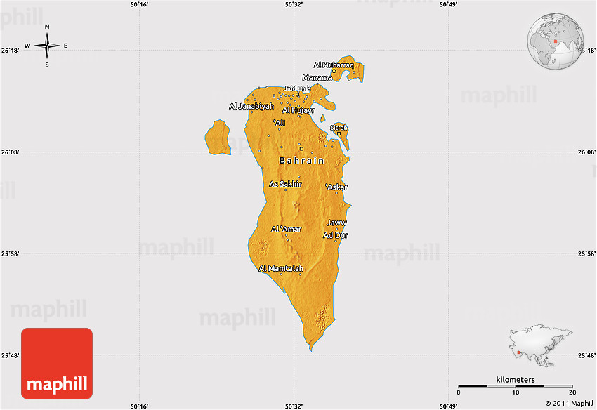 Maphill is a collection of map images. This political map of Bahrain is one of them. Click on the Detailed button under the image to switch to a more detailed map.