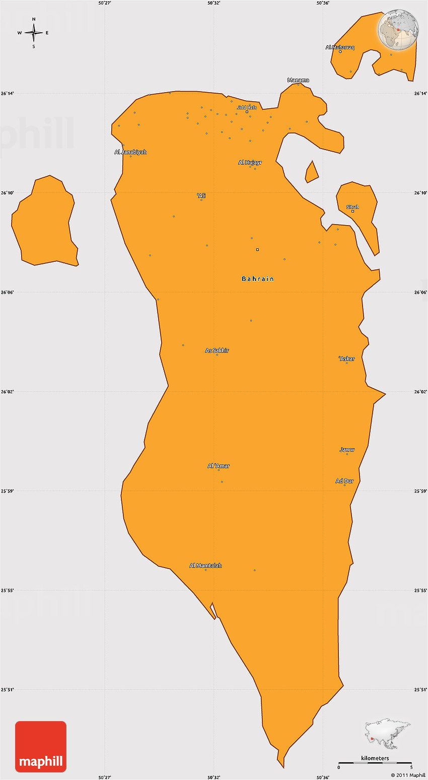 Maphill is a collection of map graphics. This simple outline map of Bahrain is one of these images. Use the buttons under the image to switch to more comprehensive and detailed map types.