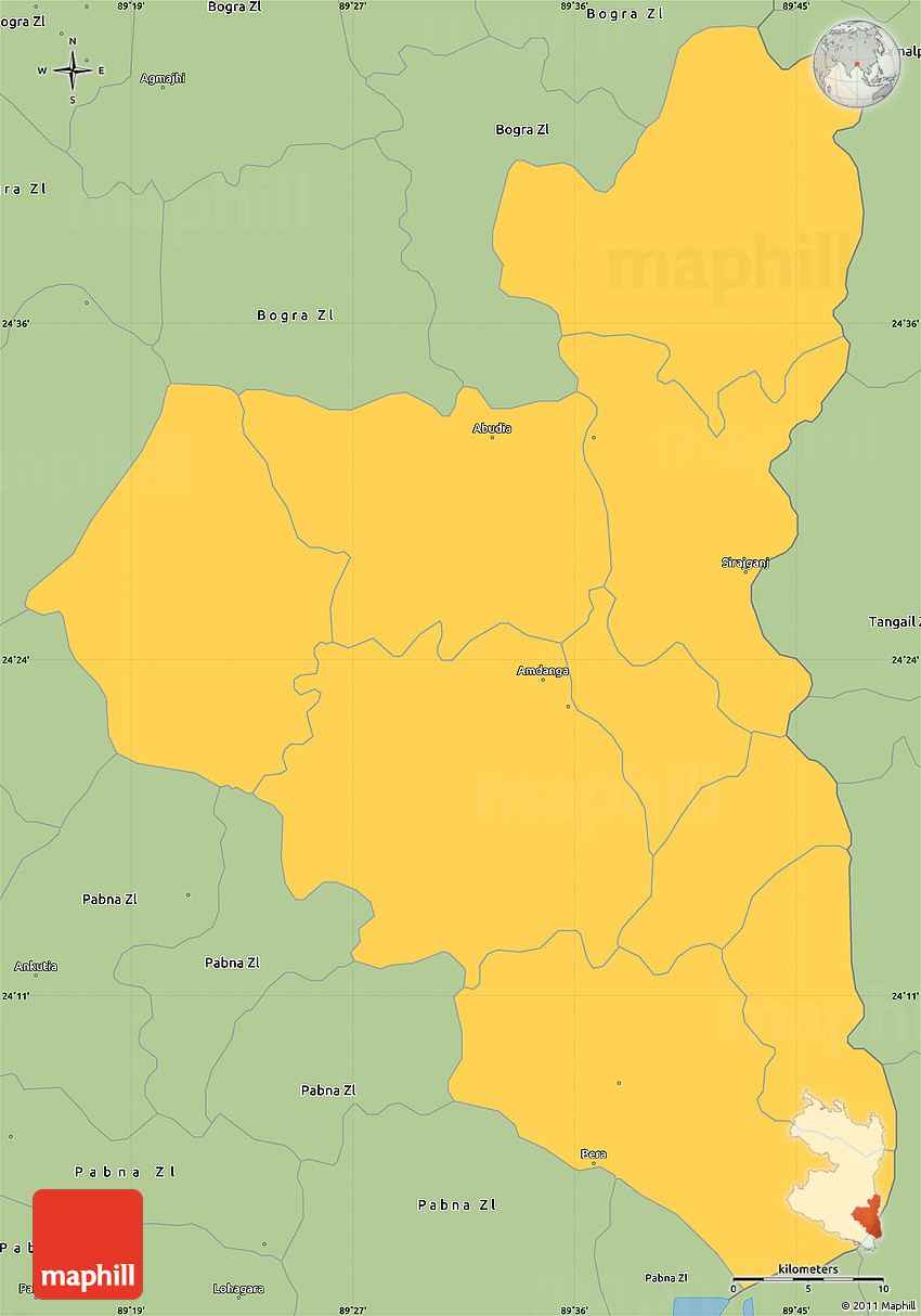 Maphill is a collection of map graphics. This simple outline map of Sirajganj Zl is one of these images. Use the buttons under the image to switch to more comprehensive and detailed map types.
