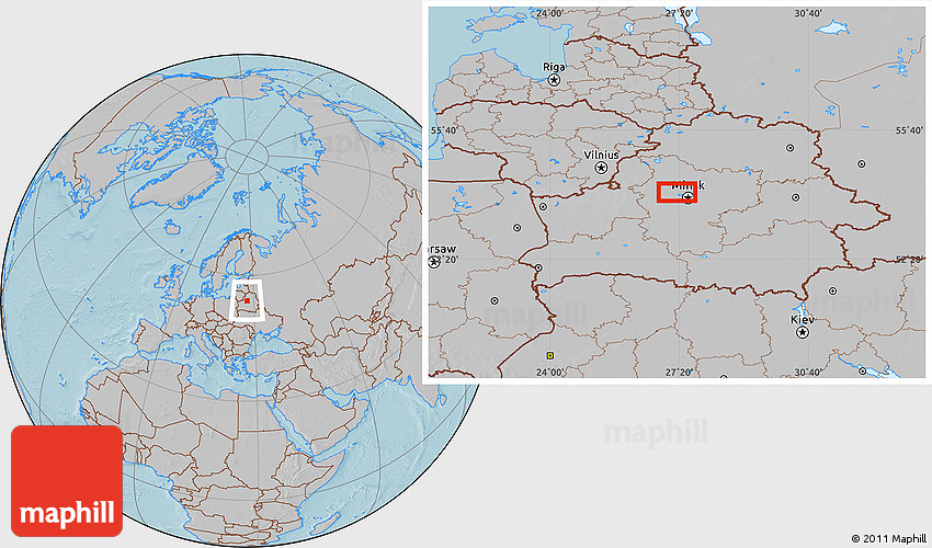 Maphill is a collection of map images. This image combines a gray map with the globe centered on Lysaya Gora. Use the buttons under the image to switch to different map types.