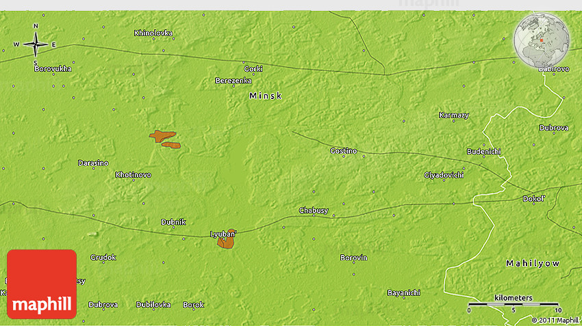 The 3D physical map represents one of many map types and styles available. Look at Yazyl', Minsk, Belarus from different perspectives.