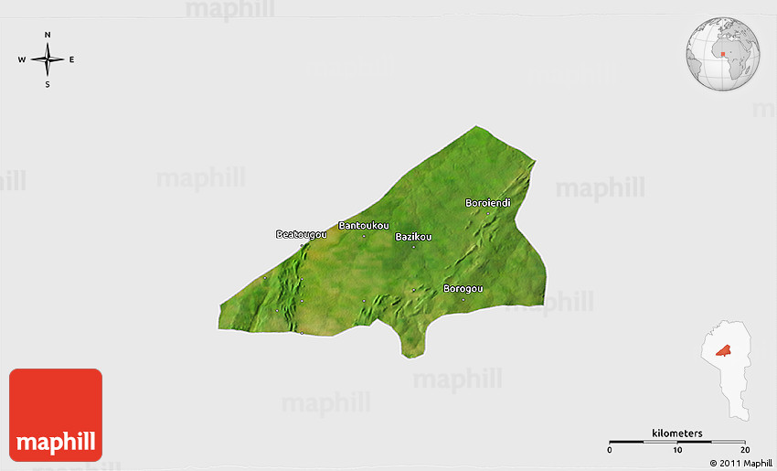Each map type offers different information and each map style is designed for a different purpose. Read about the styles and map projection used in the above map (Satellite 3D Map of Tchoukoutouna, single color outside).