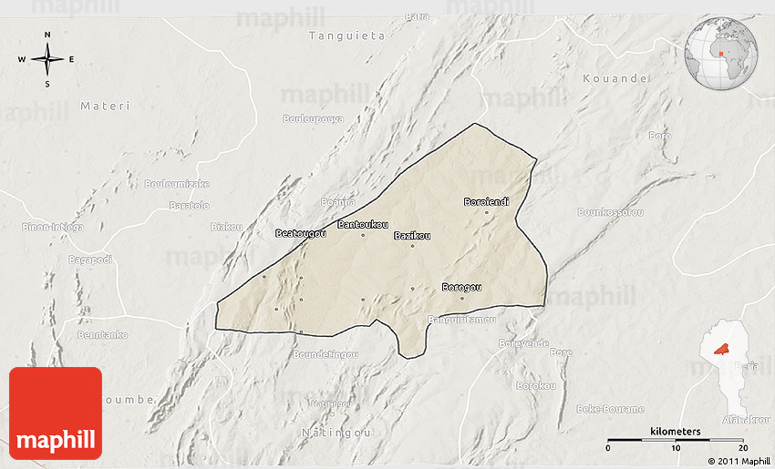 Each map type offers different information and each map style is designed for a different purpose. Read about the styles and map projection used in the above map (Shaded Relief 3D Map of Tchoukoutouna, lighten).