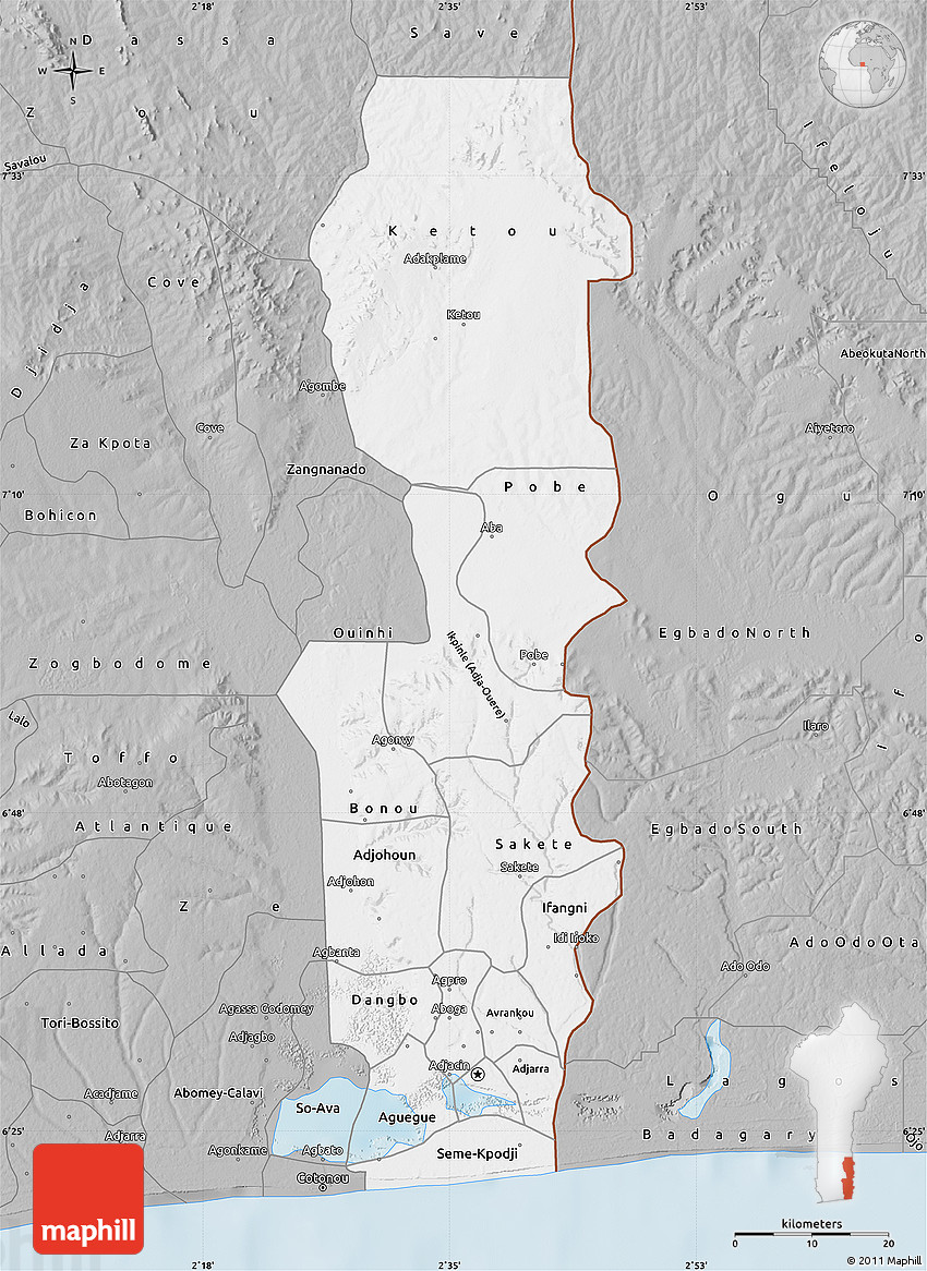Embed the above gray map of Oueme into your website. Enrich your blog with quality map graphics. Make the web a more beautiful place.