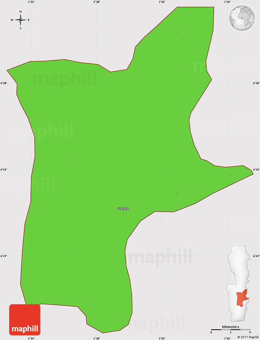 Each map type offers different information and each map style is designed for a different purpose. Read about the styles and map projection used in the above map (Political Simple Map of Sakete, cropped outside).