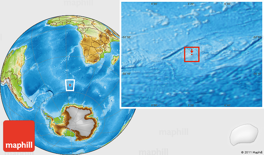 Maphill is a collection of map images. This image combines a physical map with the globe centered on Bouvet Island. Use the buttons under the image to switch to different map types.