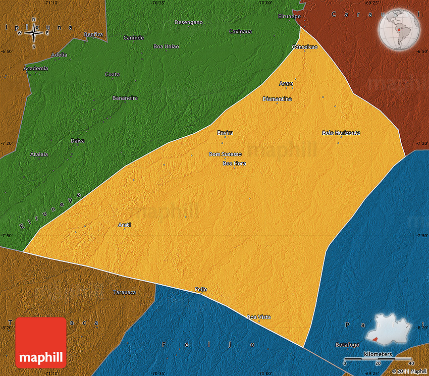 Maphill is a collection of map images. This political map of Envira is one of them. Click on the Detailed button under the image to switch to a more detailed map.