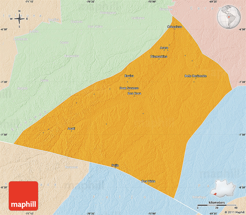 Maphill is a collection of map images. This political map of Envira is one of them. Click on the Detailed button under the image to switch to a more detailed map.