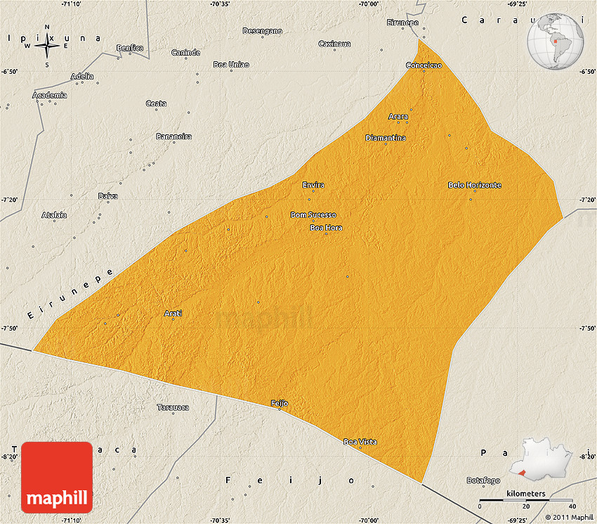 Maphill is a collection of map images. This political map of Envira is one of them. Click on the Detailed button under the image to switch to a more detailed map.
