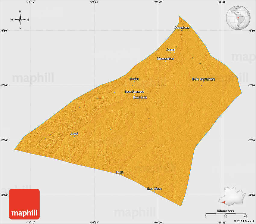 Maphill is a collection of map images. This political map of Envira is one of them. Click on the Detailed button under the image to switch to a more detailed map.