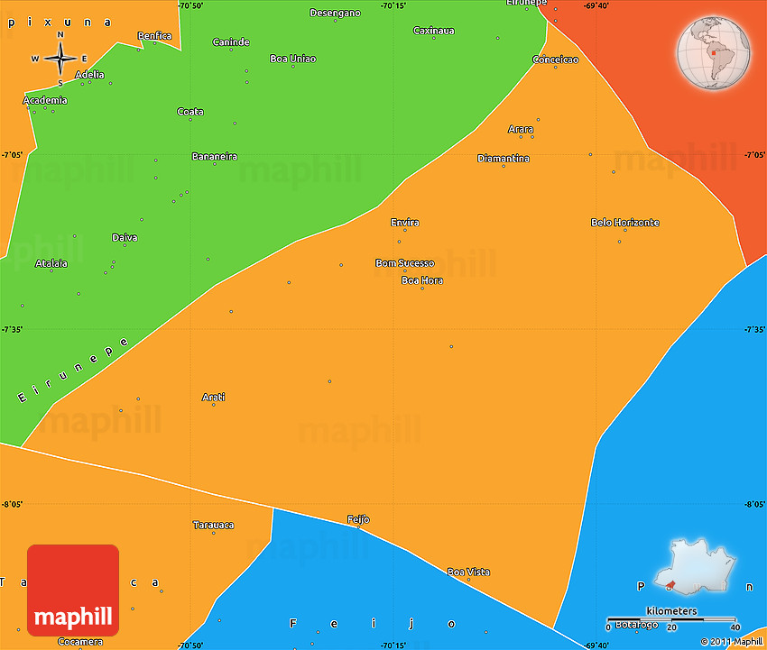 Use the buttons for Facebook, Twitter or Google+ to share this Envira, Amazonas, Brazil map. Maphill is the largest web map gallery. However, the number of maps is certainly not the only reason to visit Maphill.