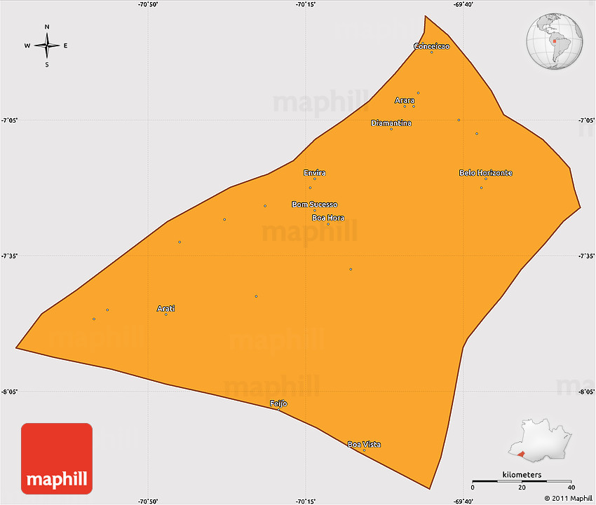 This map shows only the area inside the borders of Envira. All areas outside of the borders are cropped from the image and filled with a background color.
