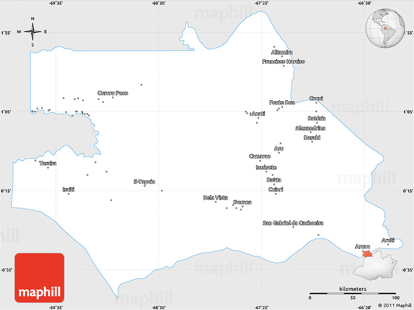 The simple silver style outline map represents one of several map types and styles available. Look at S.Gabriel D'Cac., Amazonas, Brazil from different perspectives.