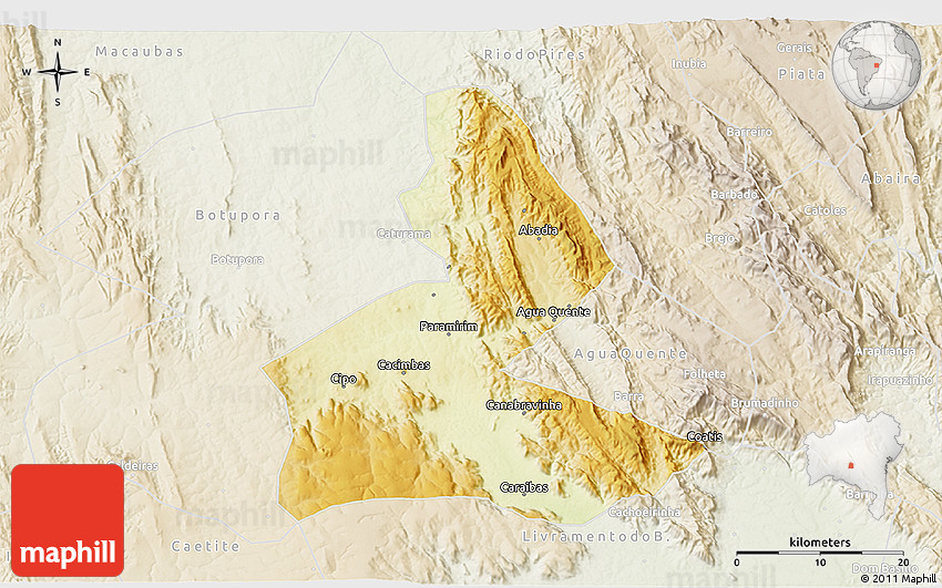 The 3D physical map represents one of several map types and styles available. Look at Paramirim, Bahia, Brazil from different perspectives.