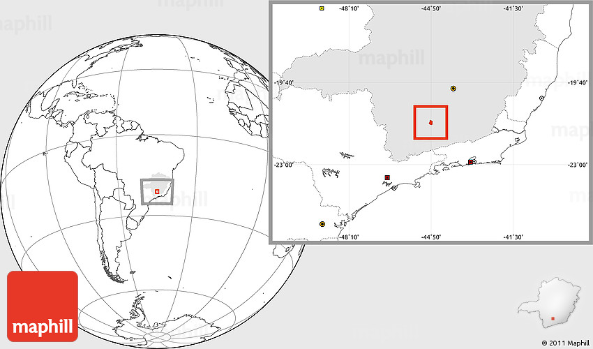 Maphill is a collection of map images. This image combines a blank map with the globe centered on Itumirim. Use the buttons under the image to switch to different map types.
