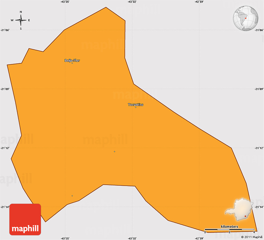 The simple political outline map represents one of several map types and styles available. Look at Tocantins, Minas Gerais, Brazil from different perspectives.