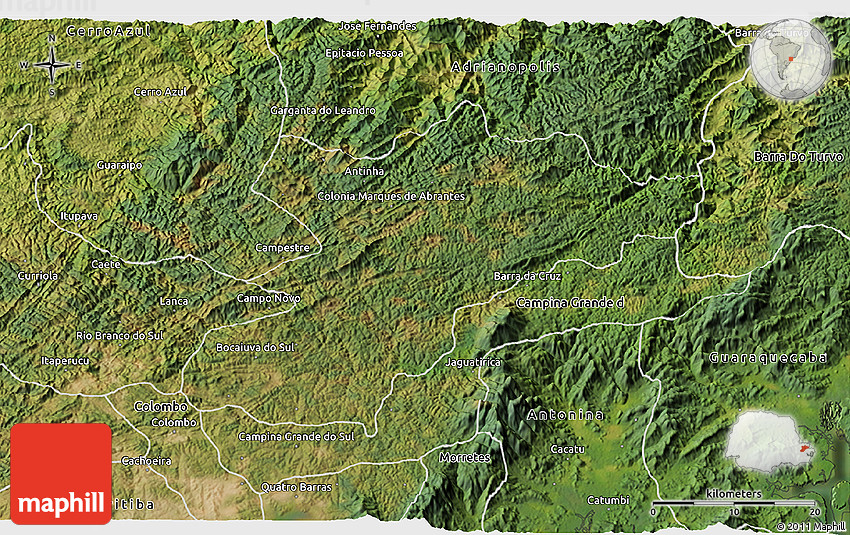 The value of Maphill lies in the possibility to look at the same area from several perspectives. Maphill presents the map of Bocaiuva do Sul in a wide variety of map types and styles.