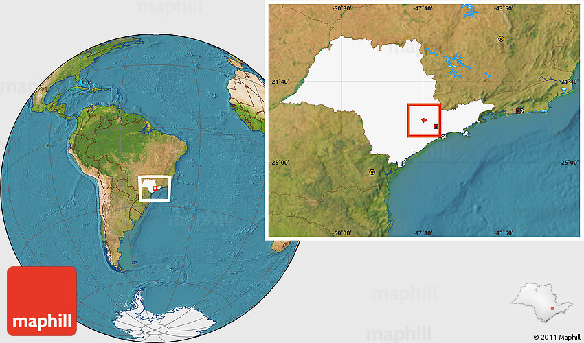 Maphill is a collection of map images. This image combines a satellite map with the globe centered on Cabreuva. Use the buttons under the image to switch to different map types.