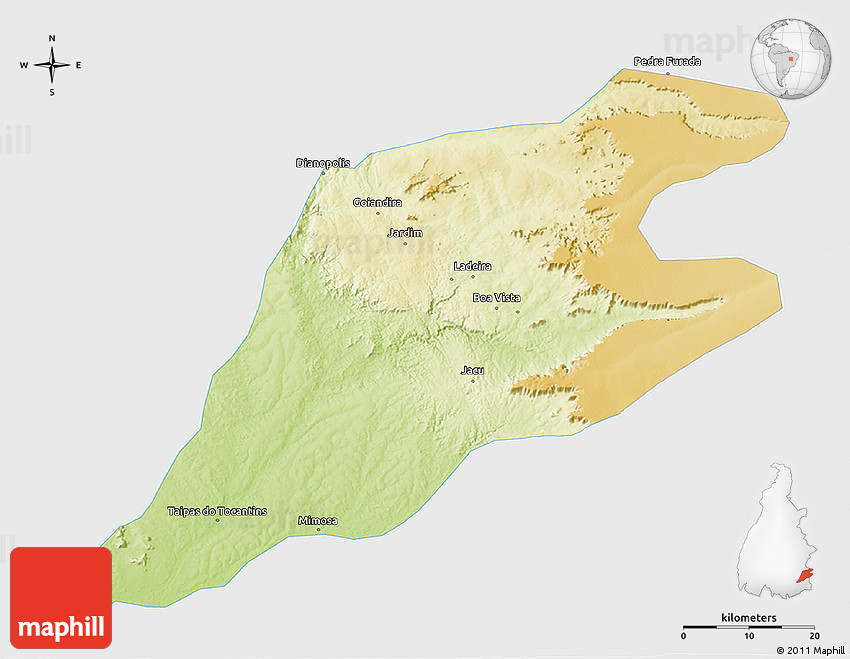 The 3D physical map represents one of several map types and styles available. Look at P.Alta D'bom Je, Tocantins, Brazil from different perspectives.