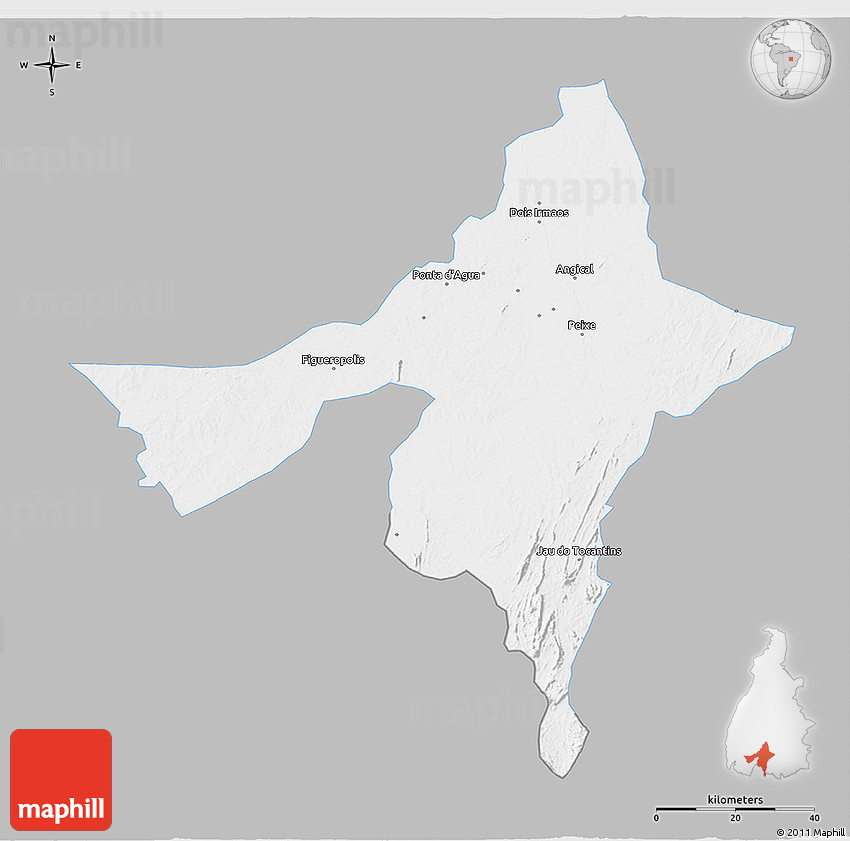 The 3D gray map represents one of several map types and styles available. Look at Peixe, Tocantins, Brazil from different perspectives.