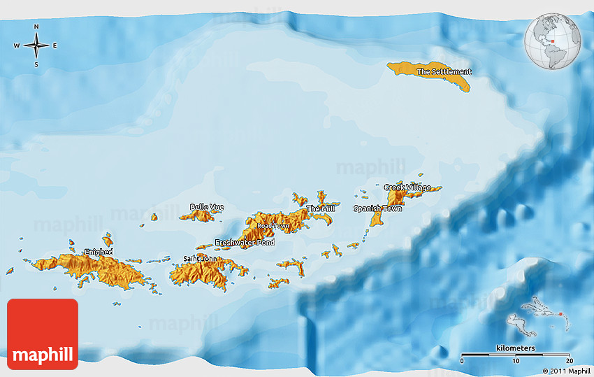 Maphill is a collection of map images. This view of British Virgin Islands at an angle of 60° is one of these images. Click on the Detailed button under the map for a more comprehensive map.