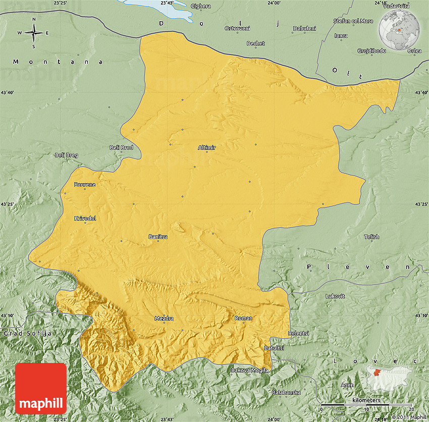Embed the above savanna style map of Vraca into your website. Enrich your blog with quality map graphics. Make the web a more beautiful place.