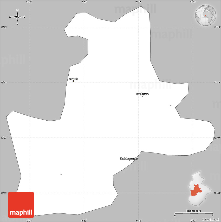 Each map type offers different information and each map style is designed for a different purpose. Read about the styles and map projection used in the above map (Gray Simple Map of Koupela, single color outside).