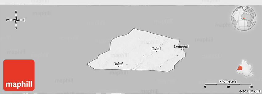 The panoramic gray map represents one of several map types and styles available. Look at Ouarkoye, Mou Houn, Burkina Faso from different perspectives.