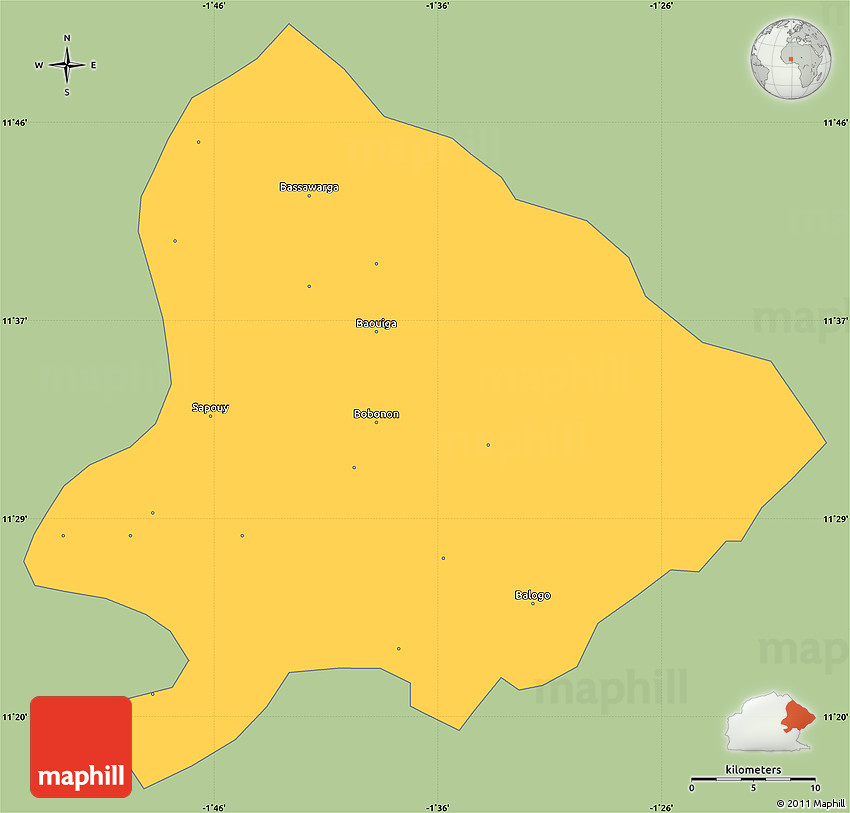Each map type offers different information and each map style is designed for a different purpose. Read about the styles and map projection used in the above map (Savanna Style Simple Map of Sapouy, single color outside).