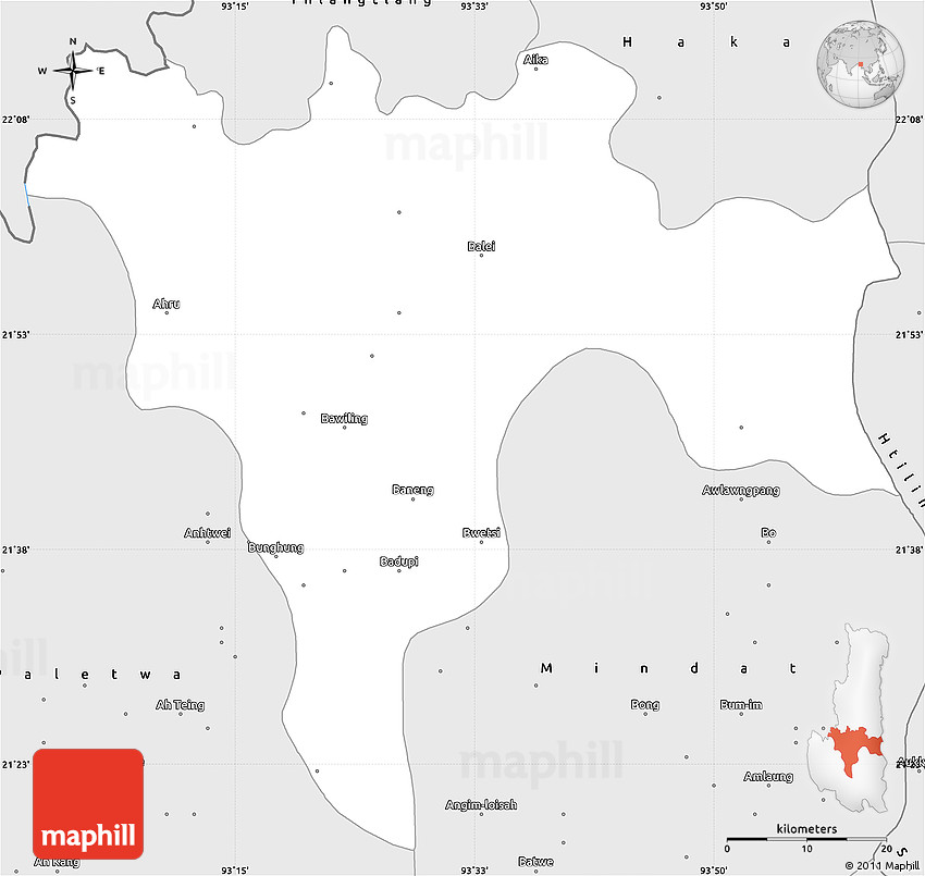 The simple silver style outline map represents one of several map types and styles available. Look at Matupi, Chin, Burma from different perspectives.