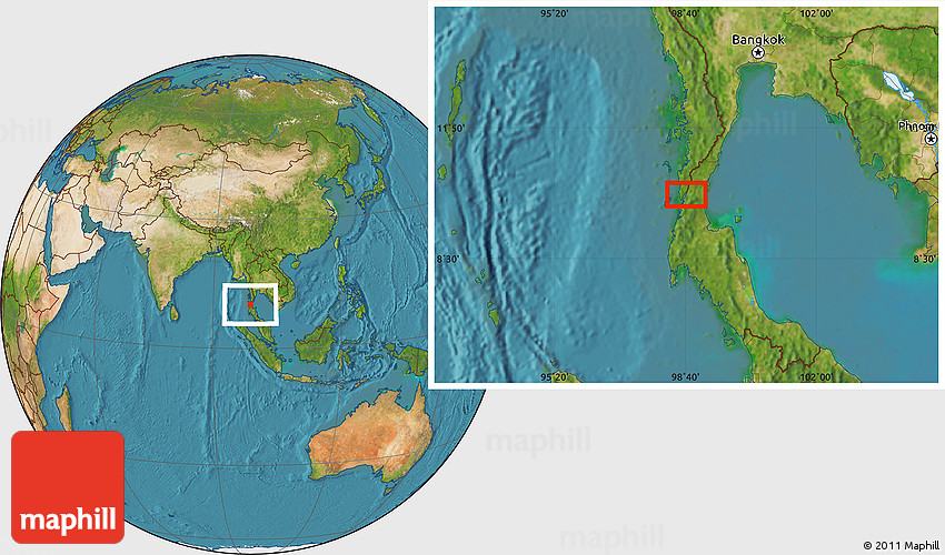 Maphill is a collection of map images. This image combines a satellite map with the globe centered on Kampong Ulu. Use the buttons under the image to switch to different map types.