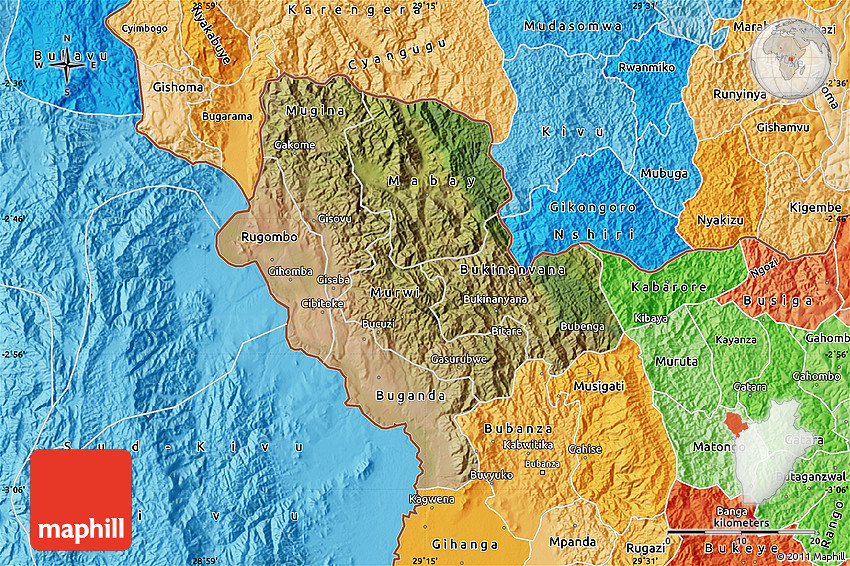 The value of Maphill lies in the possibility to look at the same area from several perspectives. Maphill presents the map of Cibitoke in a wide variety of map types and styles.
