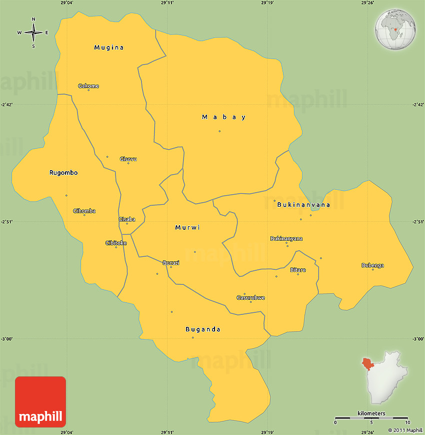 Each map type offers different information and each map style is designed for a different purpose. Read about the styles and map projection used in the above map (Savanna Style Simple Map of Cibitoke, single color outside).