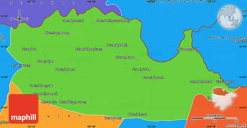 Each map type offers different information and each map style is designed for a different purpose. Read about the styles and map projection used in the above map (Political Simple Map of Chom Khsan).