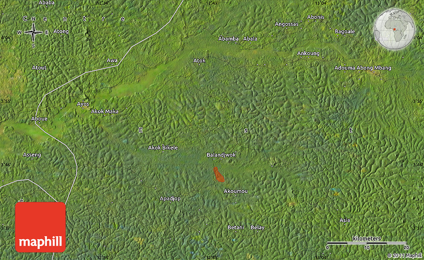 The flat satellite map represents one of many map types available. Look at Atong, Nyong-Et-Mfoumou, Centre, Cameroon from different perspectives.