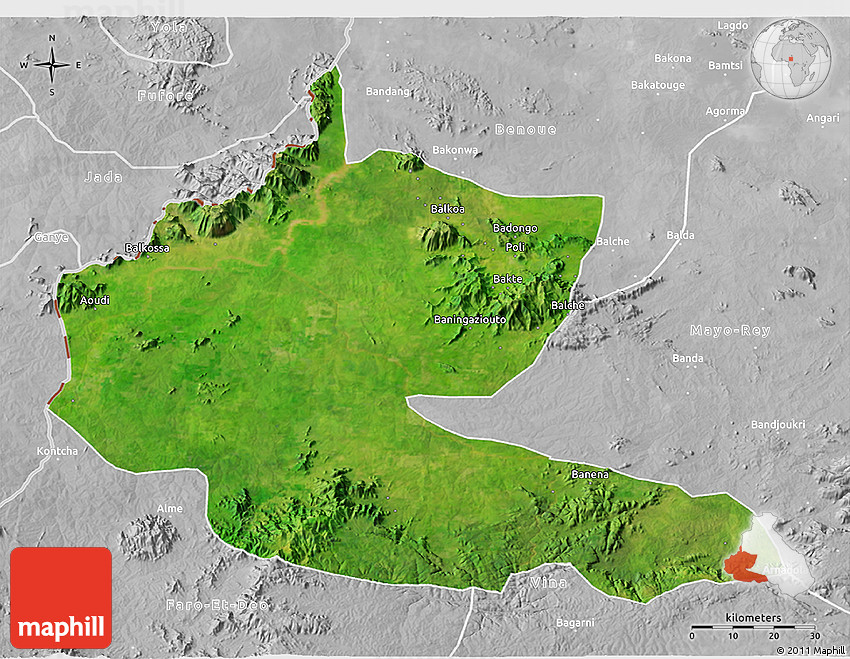 The 3D satellite map represents one of several map types and styles available. Look at Faro, Nord, Cameroon from different perspectives.
