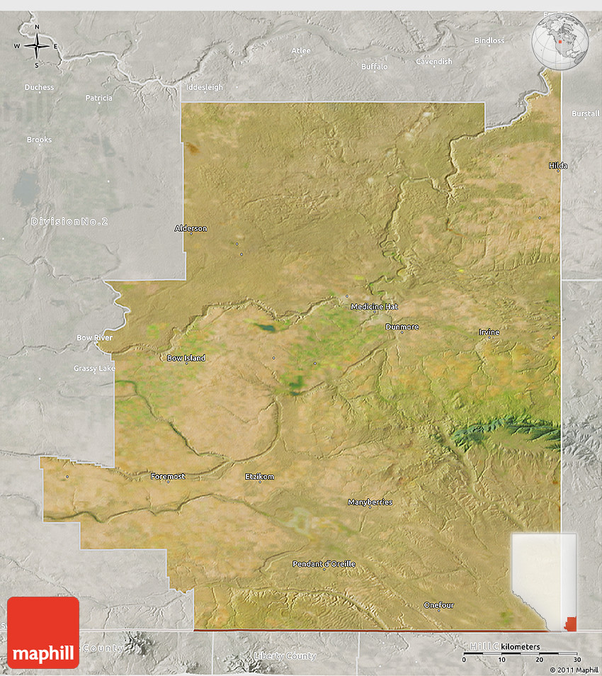 Satellite map shows the Earth's surface as it really looks like. The above map is based on satellite images taken on July 2004. This satellite map of Division No. 1 is meant for illustration purposes only. For more detailed maps based on newer satellite and aerial images switch to a detailed map view.
