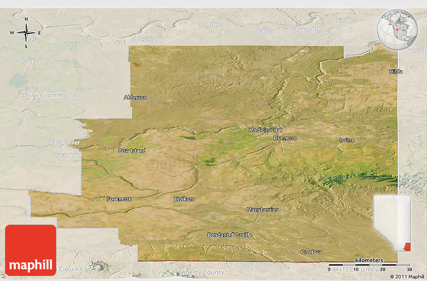 Satellite map shows the Earth's surface as it really looks like. The above map is based on satellite images taken on July 2004. This satellite map of Division No. 1 is meant for illustration purposes only. For more detailed maps based on newer satellite and aerial images switch to a detailed map view.