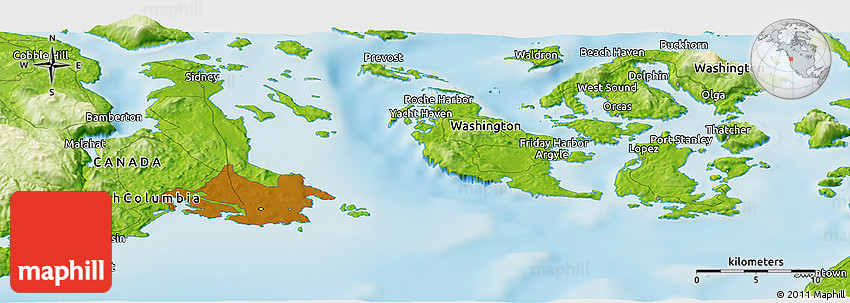 The panoramic physical map represents one of many map types and styles available. Look at Rocky Point, Capital, British Columbia, Canada from different perspectives.