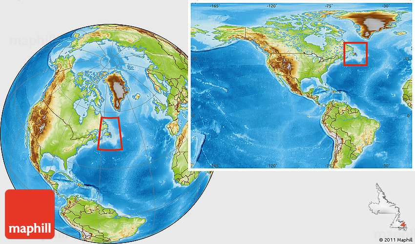 Maphill is a collection of map images. This image combines a physical map with the globe centered on Division No. 7. Use the buttons under the image to switch to different map types.
