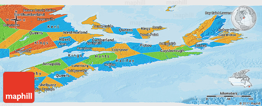 The panoramic political map represents one of many map types and styles available. Look at Nova Scotia from different perspectives.