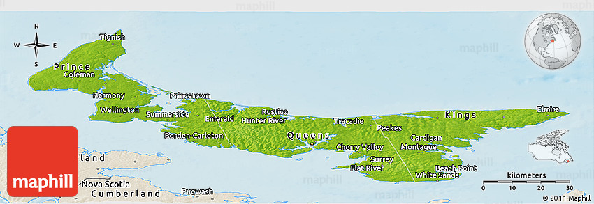 The panoramic physical map represents one of many map types and styles available. Look at Prince Edward Island from different perspectives.