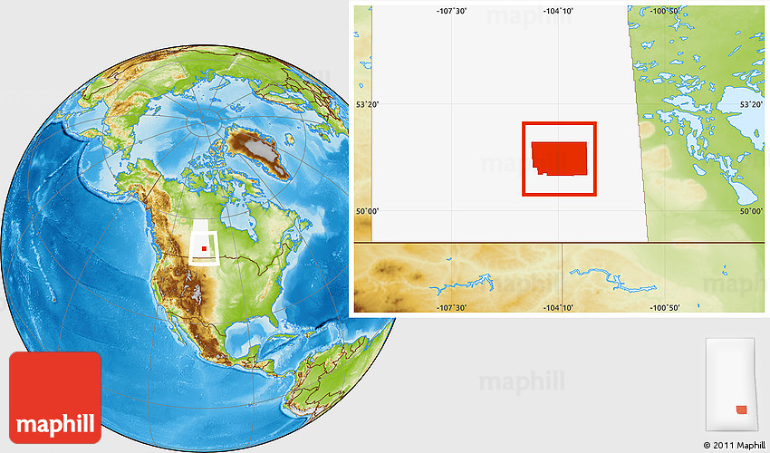 Maphill is a collection of map images. This image combines a physical map with the globe centered on Division No. 10. Use the buttons under the image to switch to different map types.
