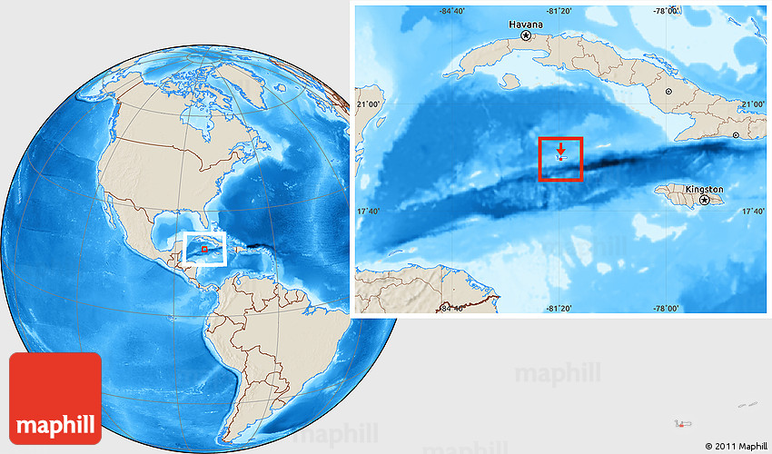 Maphill is a collection of map images. This image combines a shaded relief map with the globe centered on Bodden Town. Use the buttons under the image to switch to different map types.