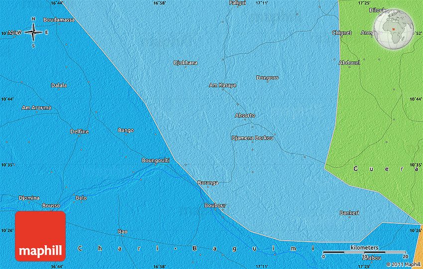 The flat political map represents one of many map types available. Look at Absorto, Massenya, Chari-Baguimi, Chad from different perspectives.