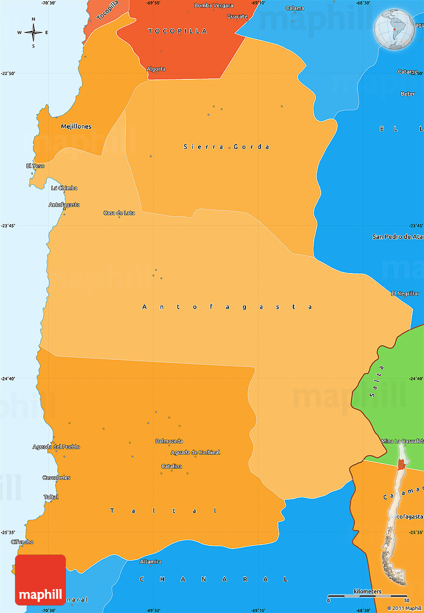 Use the buttons for Facebook, Twitter or Google+ to share this ANTOFAGASTA, Chile map. Maphill is the largest map gallery on the web. But the number of maps is certainly not the only reason to visit Maphill.