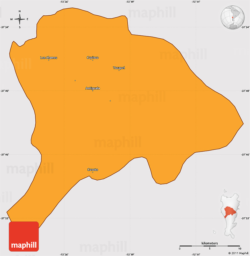 The simple political outline map represents one of several map types and styles available. Look at Los Alamos, ARAUCO, Chile from different perspectives.