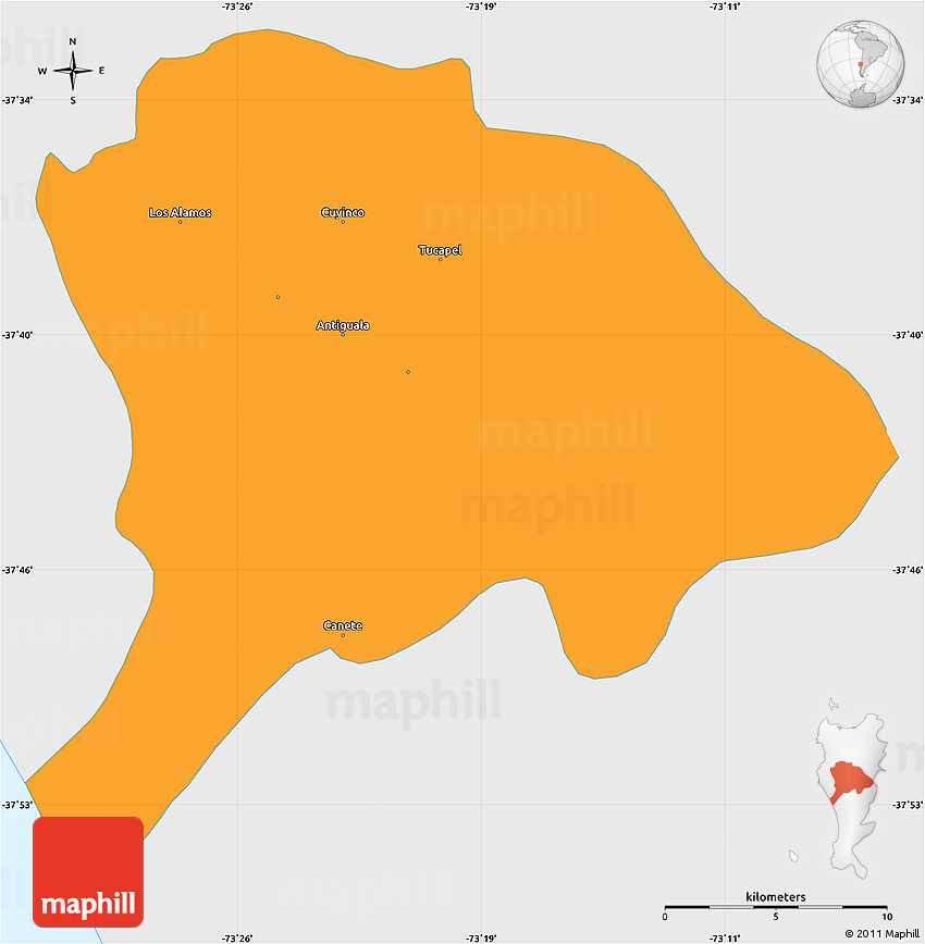 The simple political outline map represents one of several map types and styles available. Look at Los Alamos, ARAUCO, Chile from different perspectives.