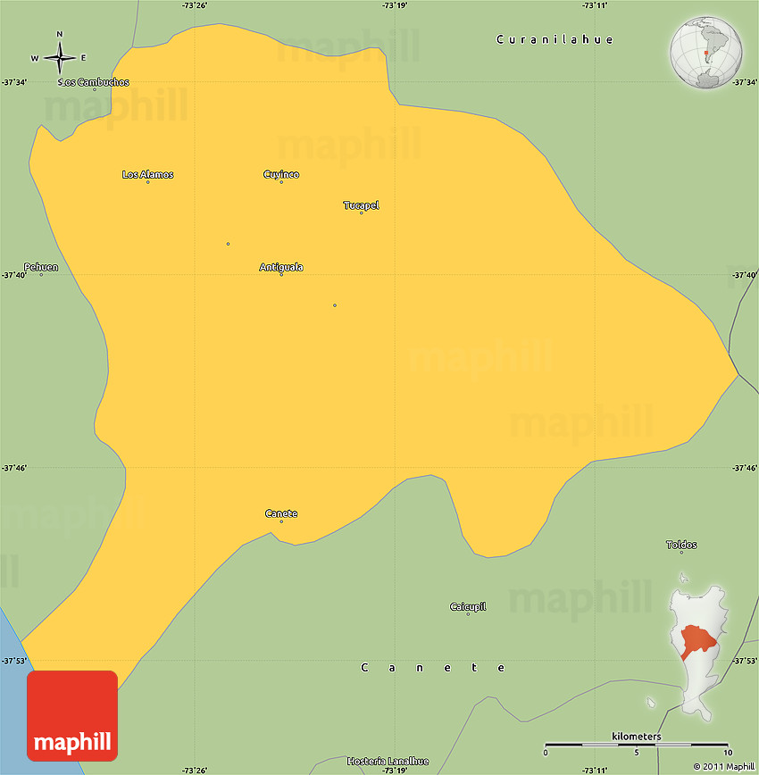 The simple savanna style outline map represents one of several map types and styles available. Look at Los Alamos, ARAUCO, Chile from different perspectives.